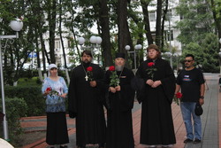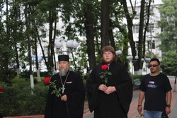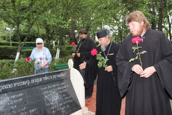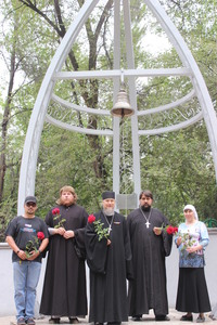 После возложения цветов и выступления президента Жээнбекова Сооронбая Шариповича священники храма также возложили цветы к памятнику «Слезы матери», который сооружен в память о трагедии и расположен недалеко от храма. По завершении мероприятия была совершена заупокойная лития по всем убиенным в междоусобной брани.