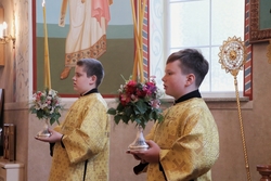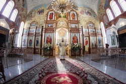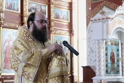 Его Преосвященству сослужило духовенство собора.