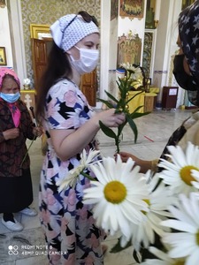 В честь этого дня добровольцы православного молодежного движения провели в Свято-Воскресенском кафедральном соборе акцию, посвященную Дню семьи, любви и верности и раздали всем прихожанам живые ромашки, тем самым подарив им хоть немного хорошего настроения в такое непростое время.