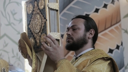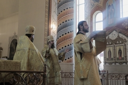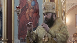 Его Преосвященству сослужил архимандрит Пётр (Путиёв).