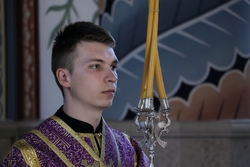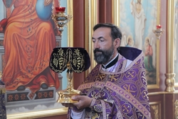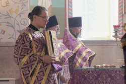 В архипастырской проповеди владыка Даниил поздравил прихожан с началом Успенского поста, который посвящен Богородице и с праздником происхождения (изнесения) Честных Древ Животворящего Креста Господня. «Хочу обратить ваше внимание на очень важный момент из сегодняшнего евангельского чтения, когда Господь, находясь на Кресте, просил Бога Отца простить своих палачей, «ибо не ведают, что творят». И Матерь Божия находясь при Кресте, тоже молилась о распинающих Христа. Если посмотреть на это с человеческой точки зрения, то кажется, логичным проклинать своих мучителей, но здесь нет человеческой логики, потому что на Кресте висит сама любовь Божья. На Кресте проявляется милость Божия и вообще суть Боговоплощения. Зачем Христос родился, зачем благовествовал, избрал святых апостолов, творил чудеса, оставил нам Евангелие? Зачем все это было? Зачем надо было освободить род человеческий от греха? Затем, что во всем этом заключалась любовь Божия! И вот когда мы смотрим на Крест, мы в первую очередь должны увидеть ни распинателей, ни гнев и ненависть, а любовь Божию. И вот когда мы увидим эту любовь, в нас многое поменяется, потому что мы являемся чадами Божьими и во всем должны подражать Спасителю. Апостол Павел завещал нам, чтобы мы борясь с грехом, распнулись со Христом Богом нашим. Любовь Божия постоянно находится с нами, наши нательные кресты, данные нам при Крещении, свидетельствуют о ней. Конечно, любить людей, которые вредят нам, обижают нас, очень сложно. Но именно, в этой ситуации и будет проявляться в нас заповедь любви, когда мы найдем силы прощать. Все нам Господь дал для нашего спасения, ничего нам искать не нужно. Все величайшее богатство у нас есть, величайшая сила, величайшая помощь. Поэтому, дорогие братья и сестры, когда мы смотрим на Крест, мы должны видеть тот неизреченный источник бездонной любви Божией к нам и любви Божией в нас. Всех поздравляю с этим великим праздником происхождения Честных Древ Животворящего Креста Господня. Всем желаю с благоговением пройти сей пост. Хочу пожелать также не только просить чего-либо у Бога – это мы умеем, но и учиться быть благодарными и благодатными. Учиться любить ближнего, прощать его, заботиться о нем, быть сострадательным к чужой беде и нужде».