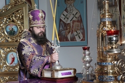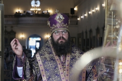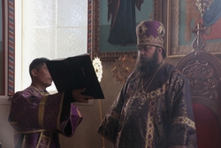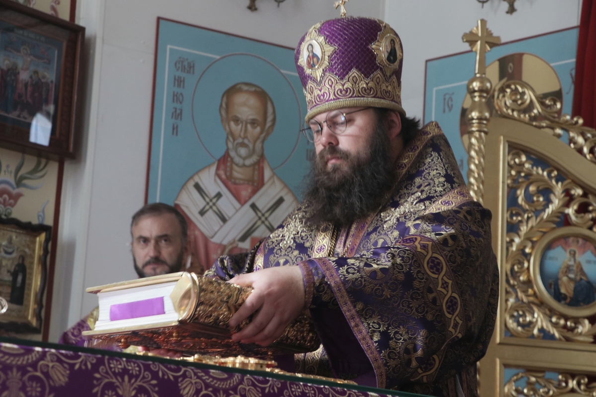 Его Преосвященству сослужили: архимандрит Пётр (Путиёв), иерей Георгий Дворовой, иерей Никита Чебуков, иерей Андрей Андреев.