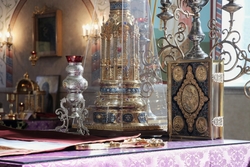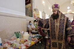 По окончании Божественной литургии владыка совершил чин малого освящения воды и освятил мед нового урожая.