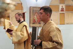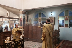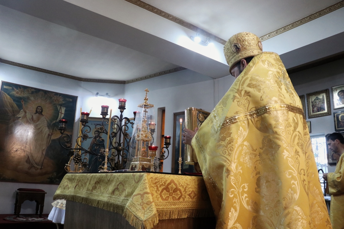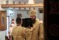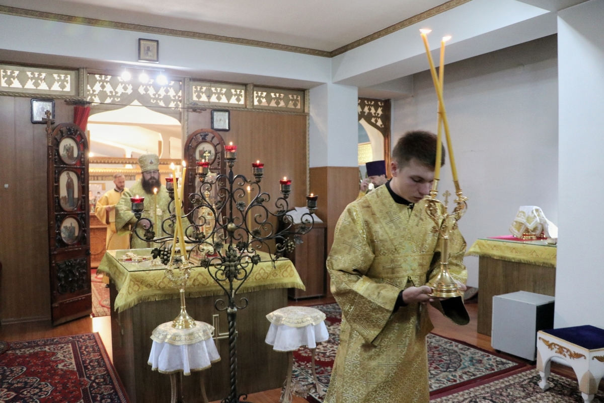 Его Преосвященству сослужили: архимандрит Пётр (Путиёв), протоиерей Андрей Кунавин, иерей Георгий Дворовой.