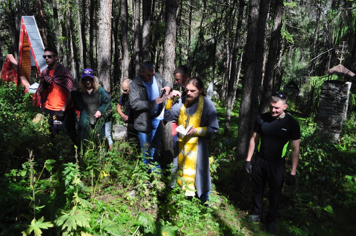 По пути следования, по сложившейся традиции на кладбище альпинистов была совершена лития по усопшим. На этот раз лития читалась о всех погибших в Великой Отечественной Войне и об усопших альпинистах.