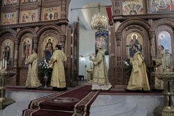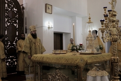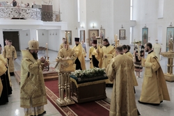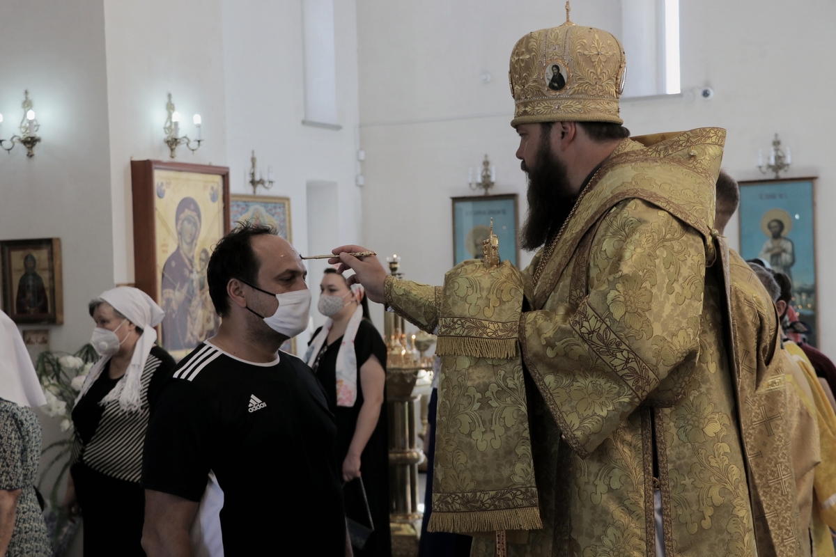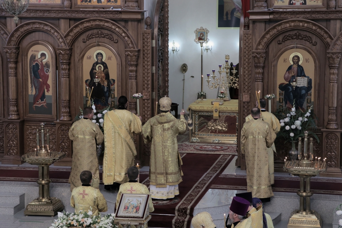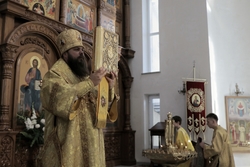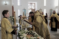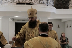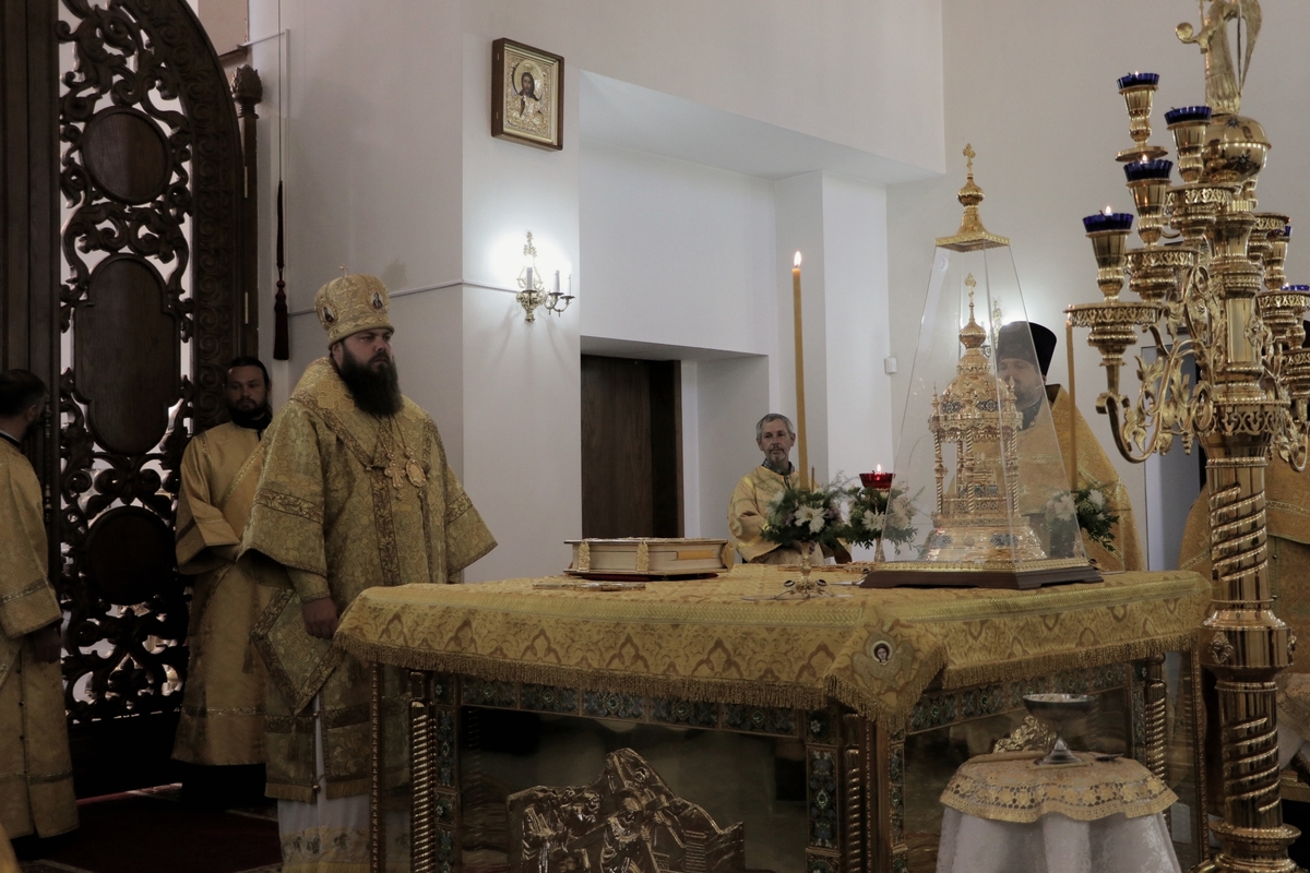 Его Преосвященству сослужили: архимандрит Пётр (Путиёв), протоиерей Андрей Кунавин, иерей Георгий Дворовой, иерей Олег Белотуркин, иерей Николай Пелых.