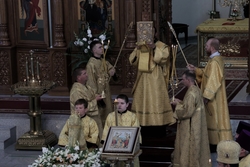 29 августа 2020 года, в седмицу 12-ю по Пятидесятнице, епископ Бишкекский и Кыргызстанский Даниил совершил Всенощное бдение в соборе святого равноапостольного великого князя Владимира.