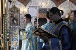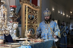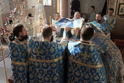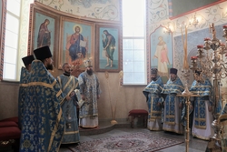 Его Преосвященству сослужили: архимандрит Пётр (Путиёв), протоиерей Андрей Борисенко, иерей Георгий Дворовой, иерей Никита Чебуков, иерей Владимир Кусаинов, иерей Илия Меляков.