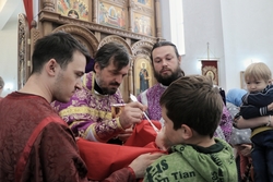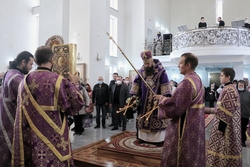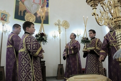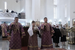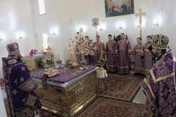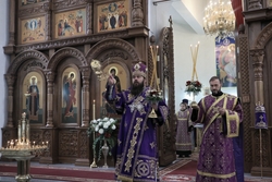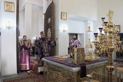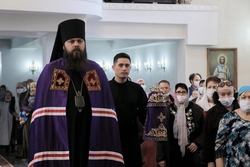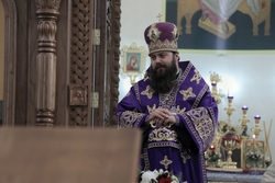 Его Преосвященству сослужили: архимандрит Пётр (Путиёв), протоиерей Андрей Кунавин, иерей Георгий Дворовой.