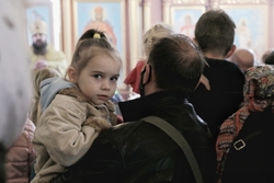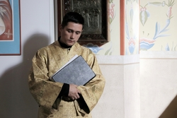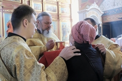 «Сегодня, дорогие братья и сестры мы слышали Евангельское повествование (Лк.5, 1-11)о том, как ученики Христа – рыбаки целую ночь трудились, но ничего не поймали, но когда Господь вошел в их лодку и, после проповеди, велел забросить сети, поймалось столько рыбы, что вытащить не могли и даже сеть порвалась. В слове сказано, что Петр Симон испугался такого обилия благодати. Но и мы также часто пугаемся благодати Божией. Как она выражается? Господь каждому из нас дает по мере Своей, по тем силам, которые мы можем понести. Иногда мы думаем, что Бог дал нам больше, чем мы способны понести. Мы думаем таким образом, потому что ленивы и нерадивы. Здесь же говорится о том, что когда Господь нам дает благодатные силы, мы говорим – нет, нет, мы не достойны. Я часто встречаюсь с таким явлением, когда говоришь человеку – тебе лучше в монашество идти или в священство, звучит ответ: «Ой, я не достоин». Но это лукавство от природы нашей. Если дается что от Господа – это надо принимать сполна, потому что это не будет сверх наших сил. Так и апостол Петр постоянно пугался, потому что он видел эту благодать и отстранялся от нее. В последствие мы видим, что Петр отречется от Христа, но позже через покаяние он приобретет то, что является принятием благодати Господней. Но, это произойдет только после того, как он со смирением примет покаяние. А сейчас в случае ночной ловли рыбы, он боится. Он боится этого величия, этой природы Божественной, этой славы. Вот каждый из нас, если без покаяния приступает к этому величию Божьему, нам становится также страшно. Но ведь мы когда подходим к Таинству Причащения Тела и Крови Господней, мы подходим опять же через покаяние. Мы всегда этого не достойны, даже после исповеди. Нет среди нас достойных. Но, совершая Таинство Исповеди, мы, надеясь на благодать Божью, подходим к Чаше.