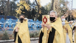 По завершении литургии была прочитана сугубая молитва и проведен молебен о умножении любви и о искоренении ненависти и всякой злобы. Затем владыка Даниил возглавил крестный ход вокруг собора.