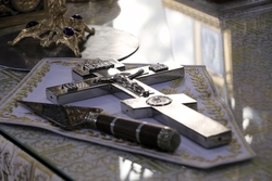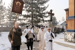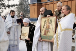 По завершении литургии был совершен крестный ход и прочитана молитва перед иконой Архангела Михаила.