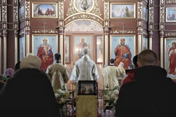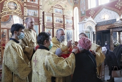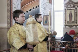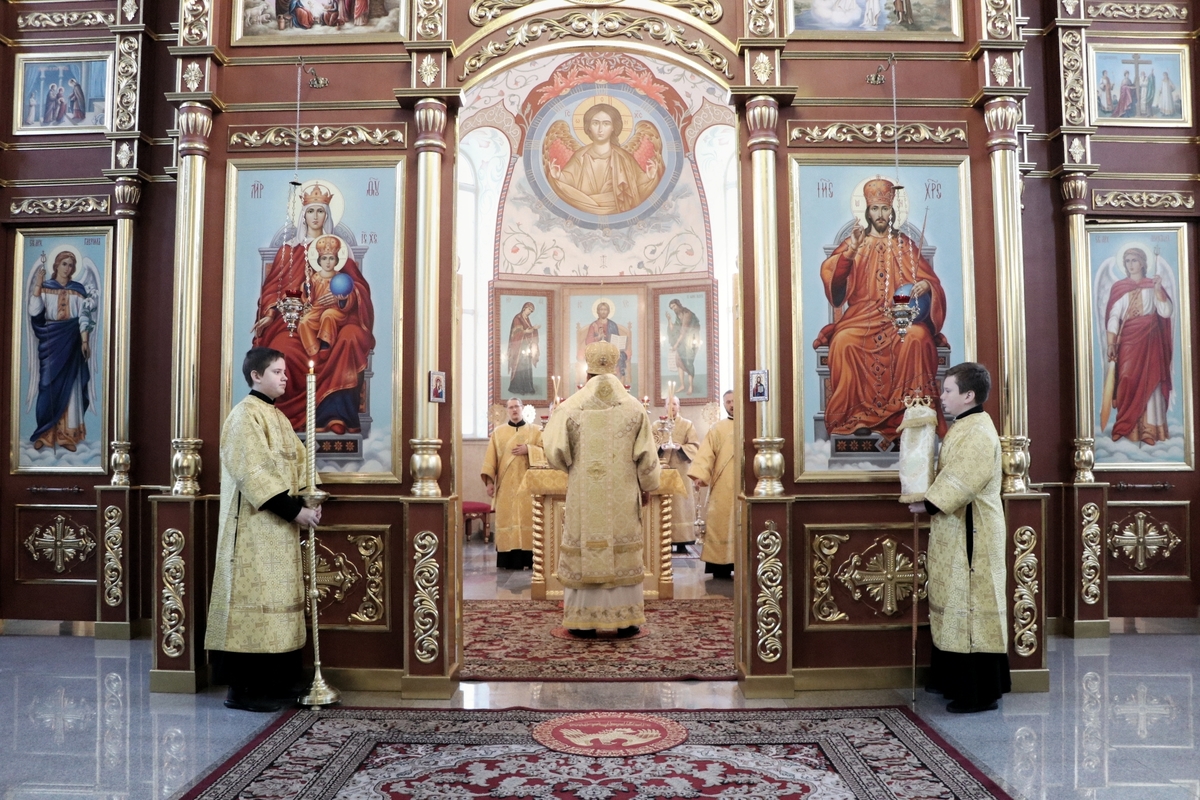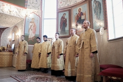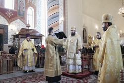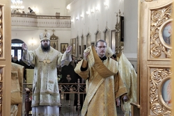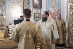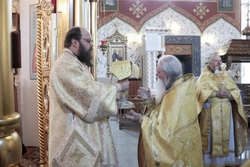 Его Преосвященству сослужили: митрофорный протоиерей Валентин Никонов, архимандрит Петр (Путиев), иерей Георгий Дворовой.