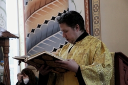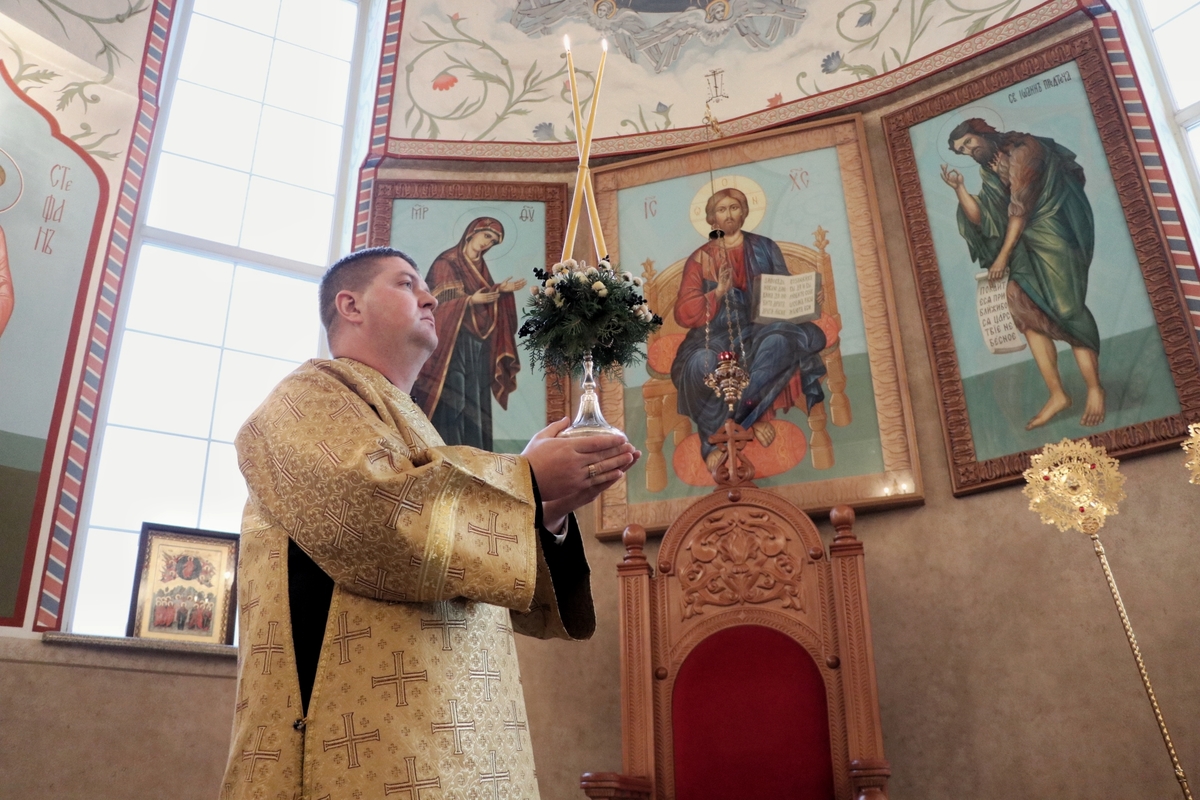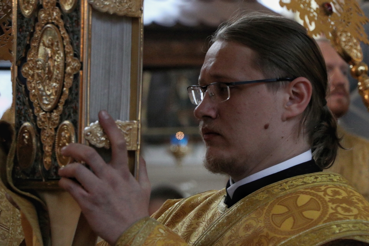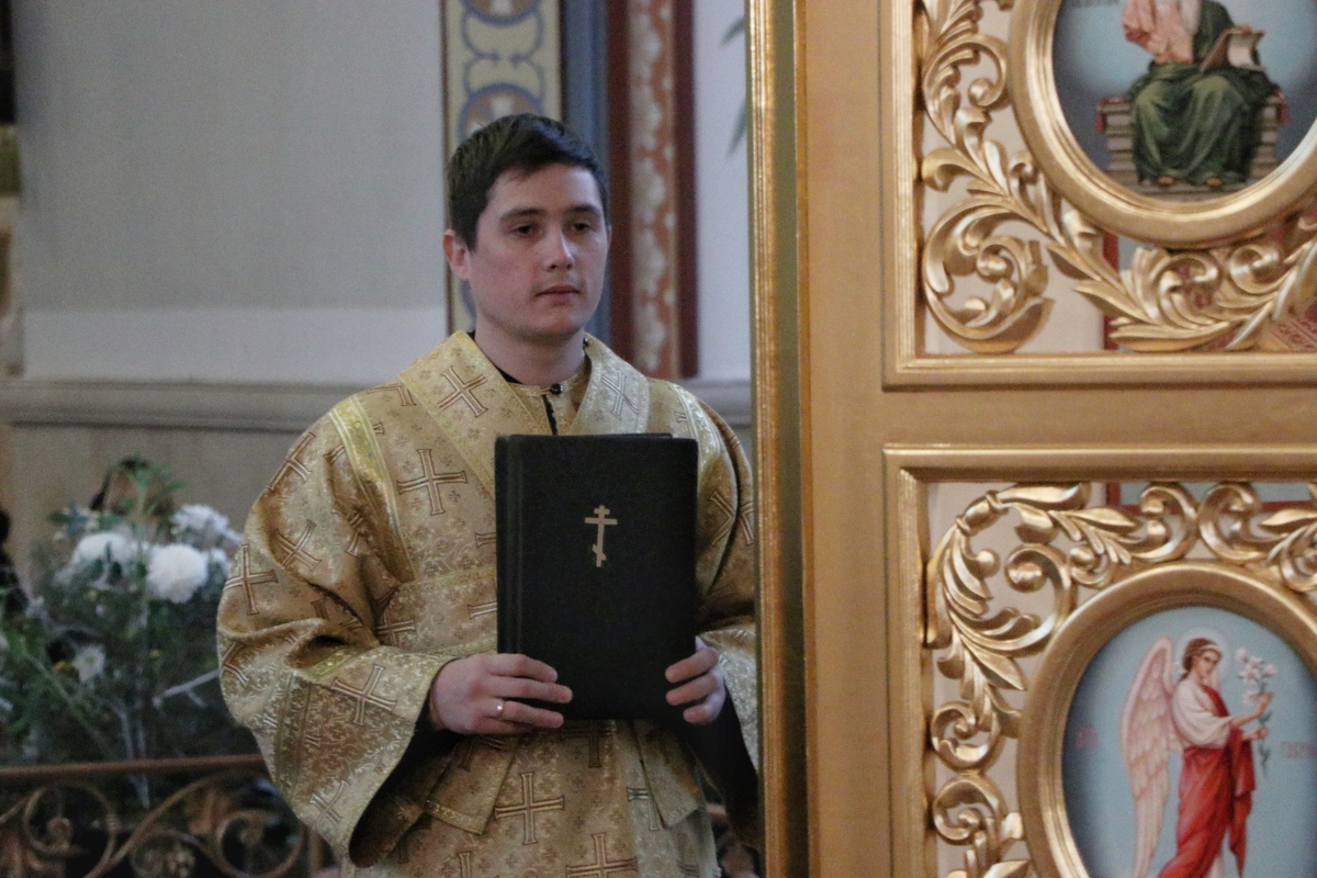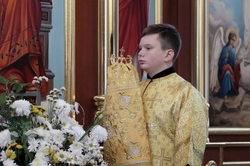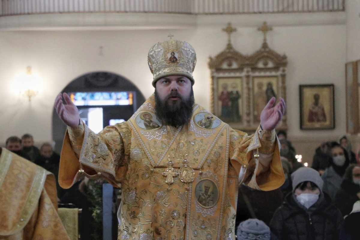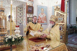 Его Преосвященству сослужили: митрофорный протоиерей Валентин Никонов, архимандрит Петр (Путиев), иерей Георгий Дворовой, иерей Илия Меляков.