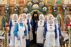 Владыка отдельно поздравил социальный отдел епархии, чьим покровителем является святой Иоанн Кронштадтский. Его Преосвященство подчеркнул, что отдел замечательно справляется со своими задачами, во многом благодаря тому, что сестры милосердия имеют такого великого покровителя и сугубо молятся ему. Владыка отметил, что социальный отдел проводит огромную работу по оказанию всесторонней помощи людям. Обращаясь к сестрам милосердия, владыка сказал: «Слава Богу, что вы имеете возможность помогать людям в таком объеме. Да, ваш труд не проходит без искушений, но, по словам Иоанна Кронштадтского вы несете иго Христово. Дай Бог вам здравия и помощи Божьей. Трудитесь, не сомневайтесь, веруйте и всегда будьте со Христом».