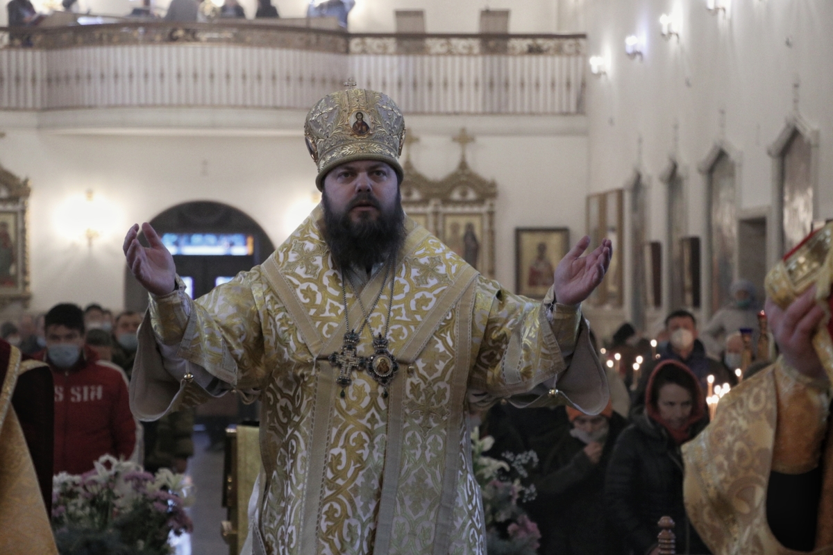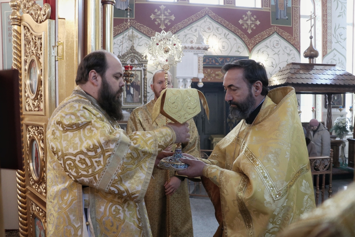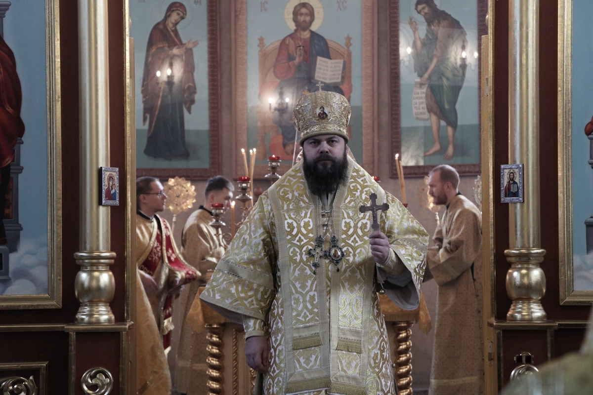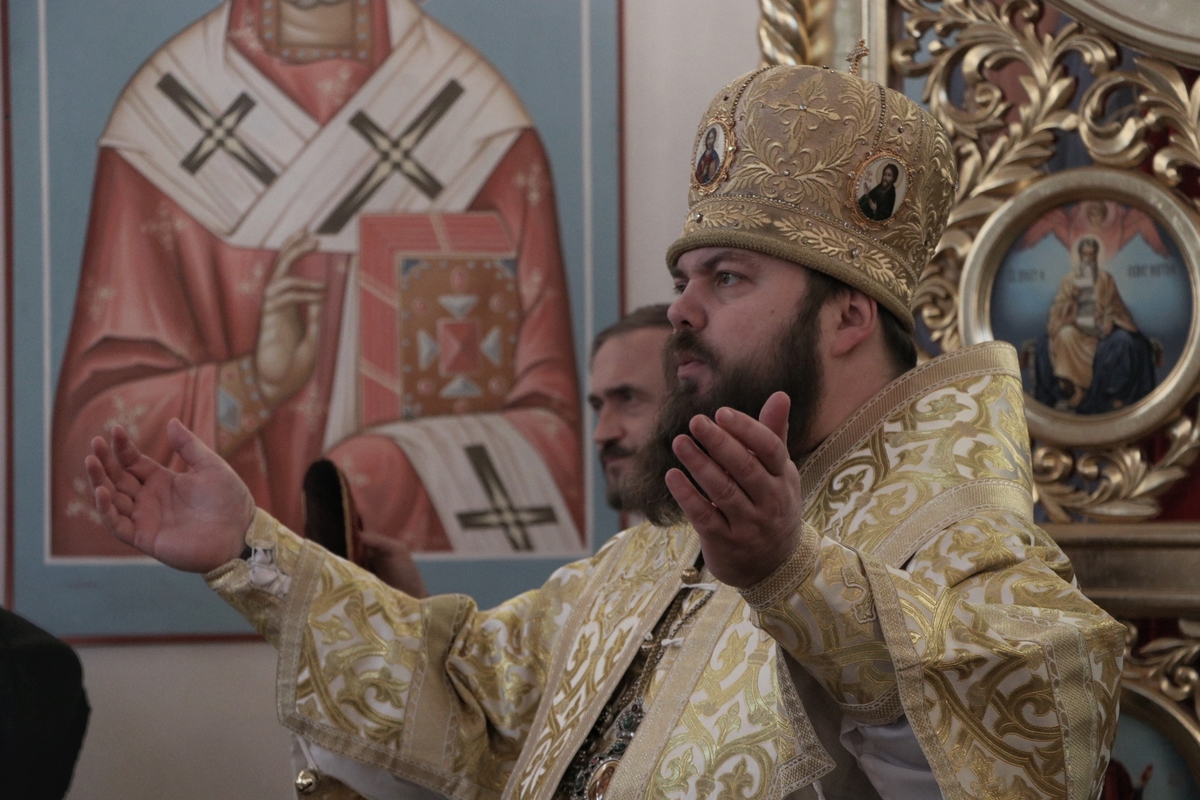 Его Преосвященству сослужили: архимандрит Петр (Путиев), иерей Георгий Дворовой.