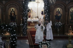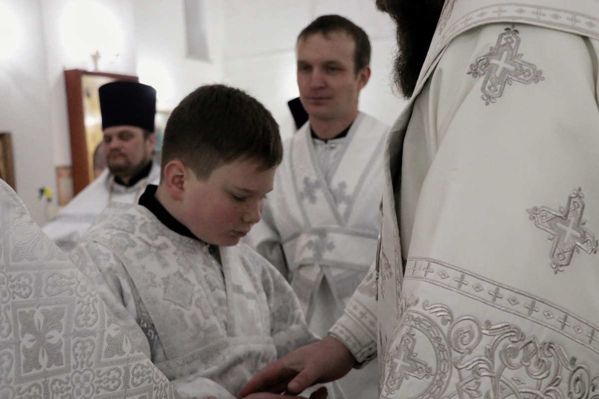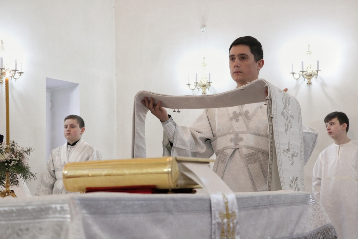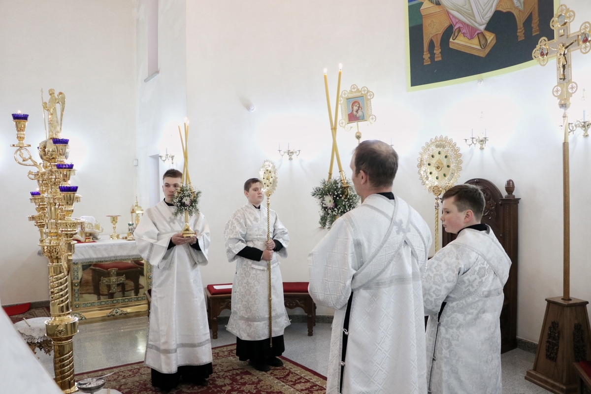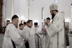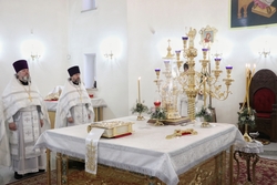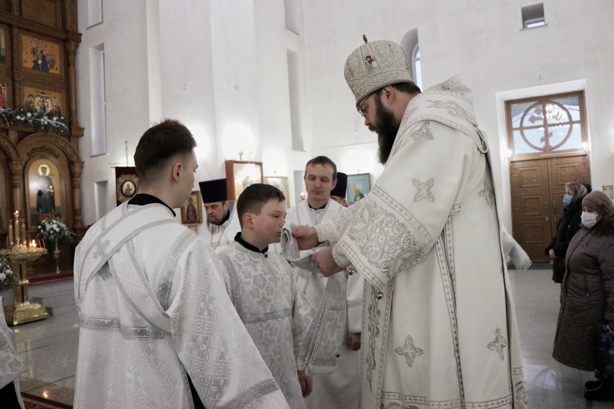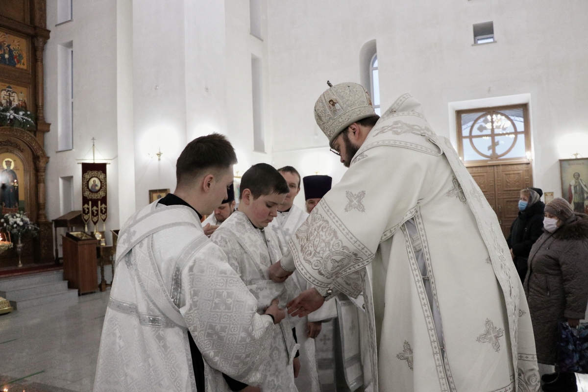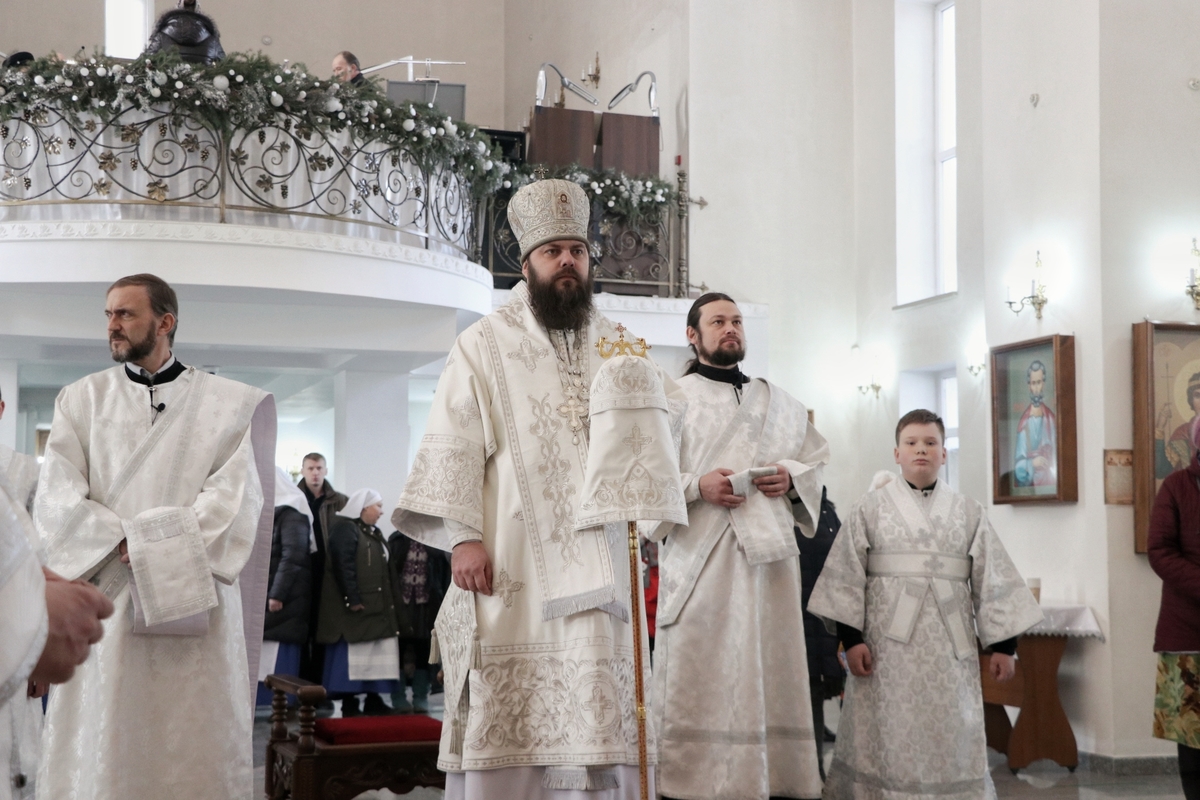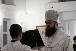 Его Преосвященству сослужили: архимандрит Петр (Путиев), протоиерей Андрей Кунавин, протоиерей Николай Сущенко, иерей Георгий Дворовой, иерей Андрей Бутаков, иерей Олег Белотуркин.