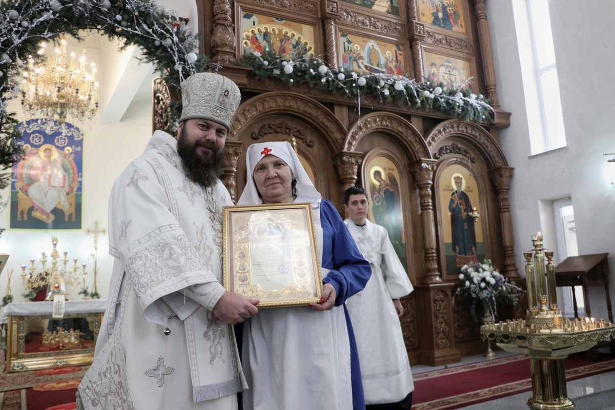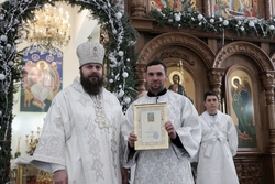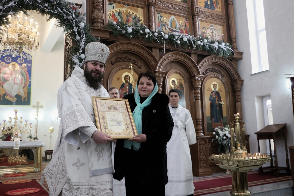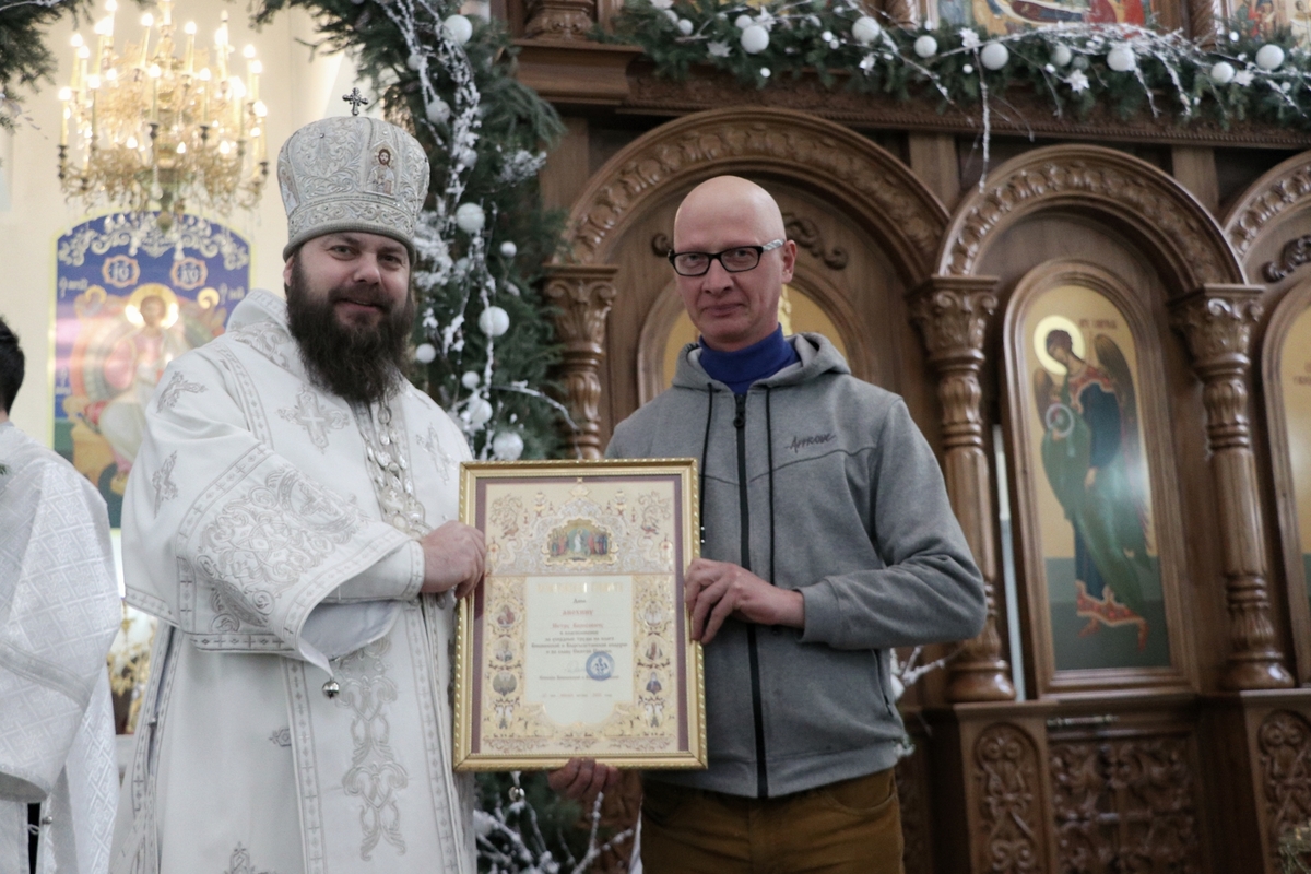 В своем обращении к прихожанам, владыка поздравил всех с Сочельником, а затем наградил священника и сотрудников епархии, потрудившихся во славу Матери-Церкви в течение минувшего года.