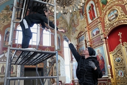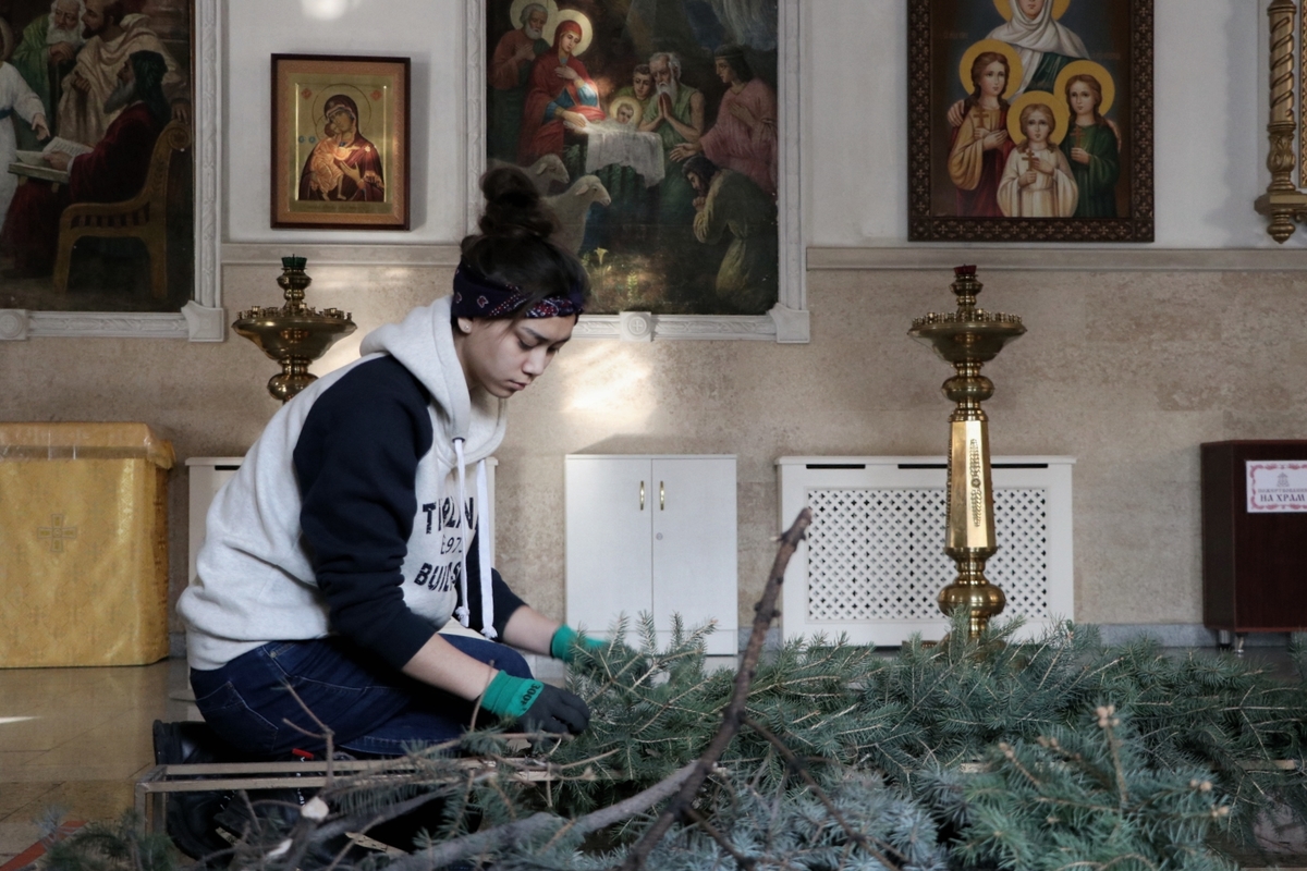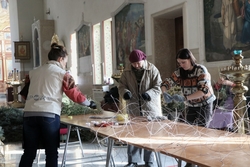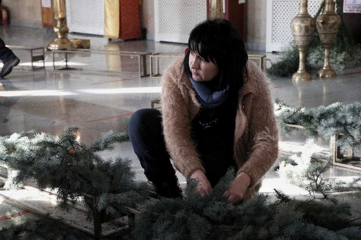 4 и 5 января с утра в Свято-Воскресенском кафедральном соборе проходила подготовка к празднованию Рождества. В этот раз флористы собора предложили провести мастер-классы по храмовому украшению к празднику. В течение двух дней в собор постоянно подходили все желающие ознакомиться с этим благодатным искусством. 5-го января работа по украшению храма продолжалась до 10 часов вечера.