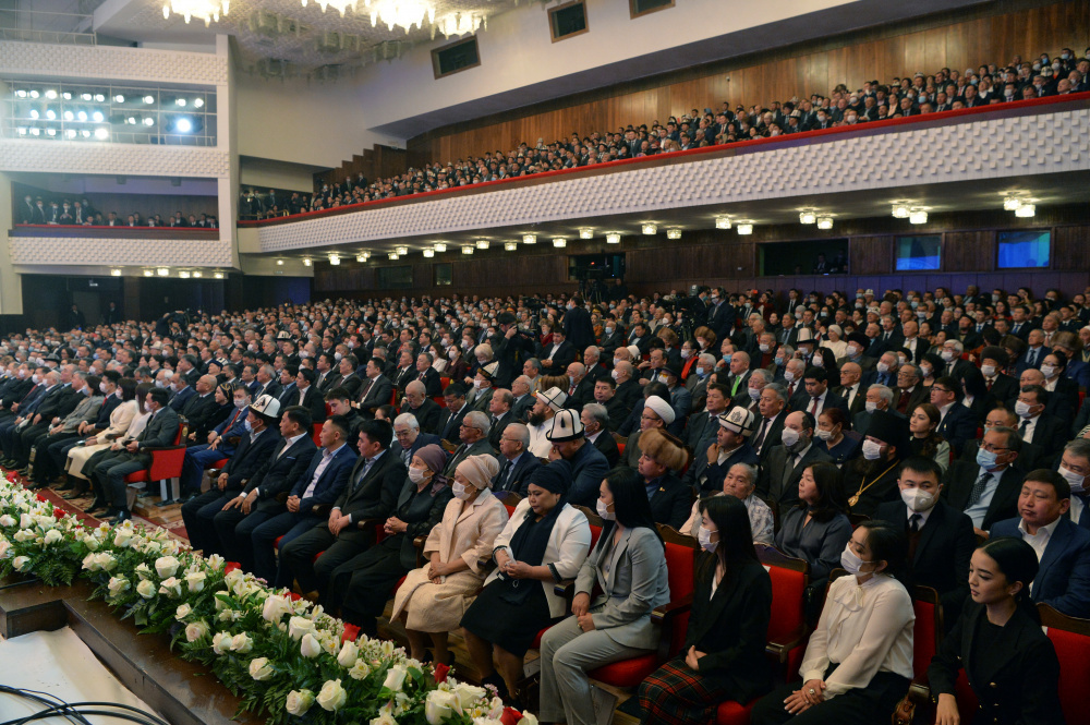 Хочу особо отметить, что я начал свою предвыборную кампанию в Таласе, где совершил обряд поклонения гумбезу Манаса, прочитал молитву по Манасу. Там я дал себе клятву, что сделаю все, чтобы приумножить силу, процветание и славу нашего народа, твердо придерживаться идеологии национального единства, оправдать надежды и чаяния людей, следовать идеям, провозглашенным нашими отцами — Абдыкеримом Сыдыковым, Жусупом Абдрахмановым, Исхаком Раззаковым.