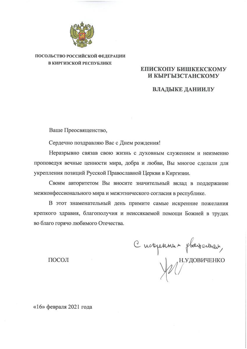 Посол Российской Федерации поздравил владыку с днем рождения