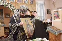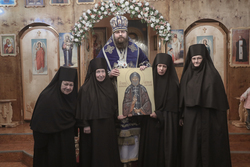 По завершении богослужения владыка произнес архипастырское слово и подарил монастырю икону преподобного Ираклия Иссык-Кульского.