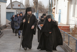 «Всечестная монахиня Иоанна с сестрами этой обители, братья и сестры, благодарю вас за сегодняшнее соборное богослужение и молитву пред Пречистой Владычицей нашей Богородицей. Сегодня предстоя пред престолом Божьим, каждый из нас молился о самом сокровенном. Я, например, молился об умножении и благоукрашении сей обители. Храм сей посвящен Вратарнице, Которая вводит нас в Царствие Божие. Я надеюсь, что Матушка наша Богородица призрит на обитель и даст многих послушниц, которые бы усердно молились и трудились здесь. Именно в монастырях совершается молитва - чтение Псалтыри, монашеского правила. У нас в Центральной Азии не так много монастырей. В Кыргызстане всего два. И дай Бог, чтобы они приумножались и укреплялись. Молим об этом Бога и Пречистую Богородицу. Вторая моя молитва была о нашей стране, чтобы она процветала и исполнялась миром, чтобы власти наши и Президент были благословлены и укреплены Господом. Дай Бог, чтобы во всем нашем регионе было добрососедство и братские взаимоотношения. Я искренне молюсь, чтобы Господь призрел на все наши немощи и нужды.
