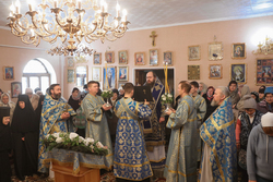 Его Преосвященству сослужили: архимандрит Петр (Путиев), иерей Георгий Дворовой.