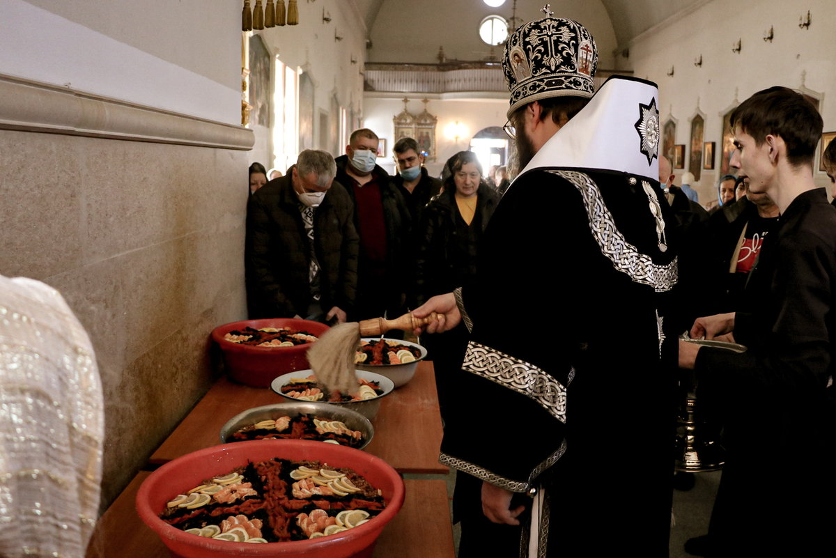 В завершение Литургии по заамвонной молитве епископ Даниил возглавил молебное пение святому великомученику Феодору Тирону и освятил коливо. По окончании литургии всем, собравшиеся на богослужение прихожанам, в память о событиях, произошедших в IV веке, раздавалось коливо.