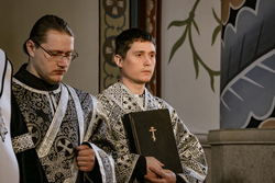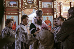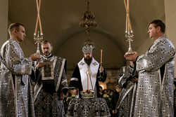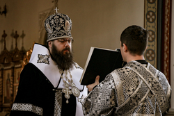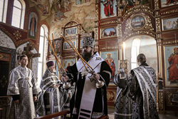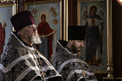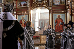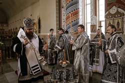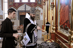 Его Преосвященству сослужило духовенство собора.