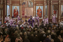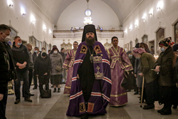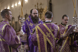 По завершении литургии владыка совершил чин Торжества Православия – торжественный молебен утверждению неискаженного христианского учения над ересями и расколами, во время которого была провозглашена «Вечная память» защитникам Православной веры, а также многолетие Предстоятелям Поместных Православных Церквей, православным архипастырям, пастырям, властям, воинству и всем верным чадам Христовой Церкви.