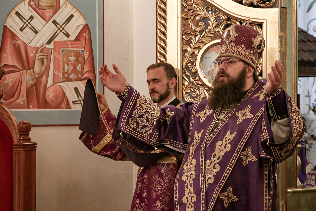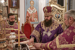 Его Преосвященству сослужили: архимандрит Петр (Путиев), иерей Георгий Дворовой.