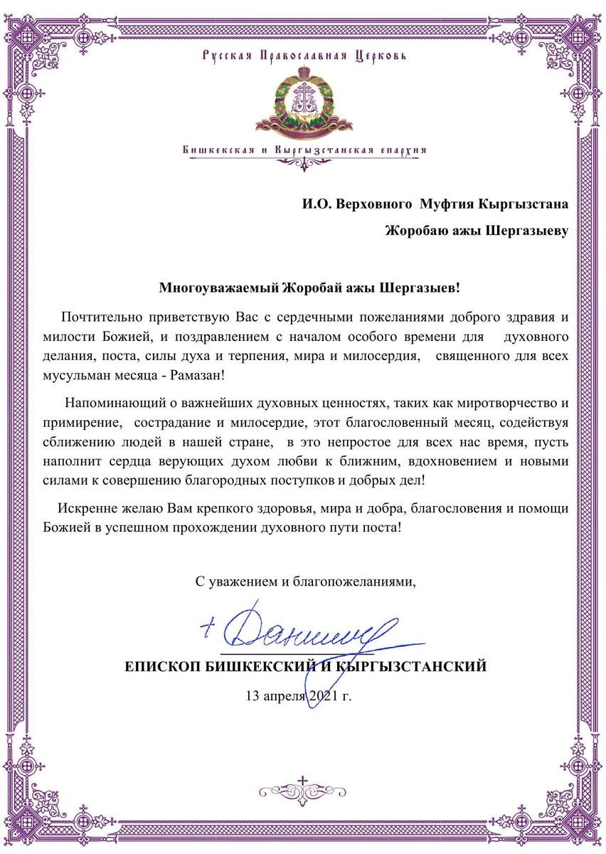 Епископ Даниил поздравил мусульман Кыргызстана с началом Рамазана