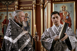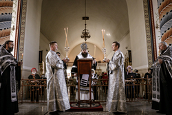 Его Преосвященству сослужили: архимандрит Петр (Путиев), иерей Георгий Дворовой, иерей Андрей Андреев.