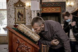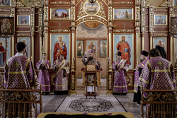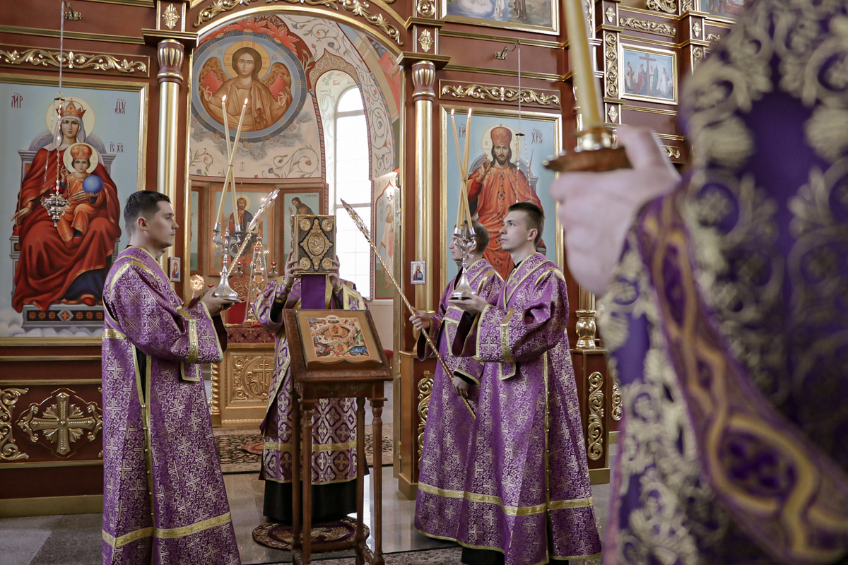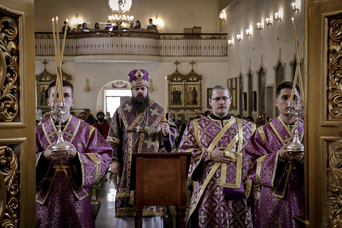 17 апреля 2021 года, в седмицу пятую Великого поста, Похвалы Пресвятой Богородицы, субботу акафиста, епископ Бишкекский и Кыргызстанский Даниил совершил Всенощное бдение в с Свято-Воскресенском кафедральном соборе.