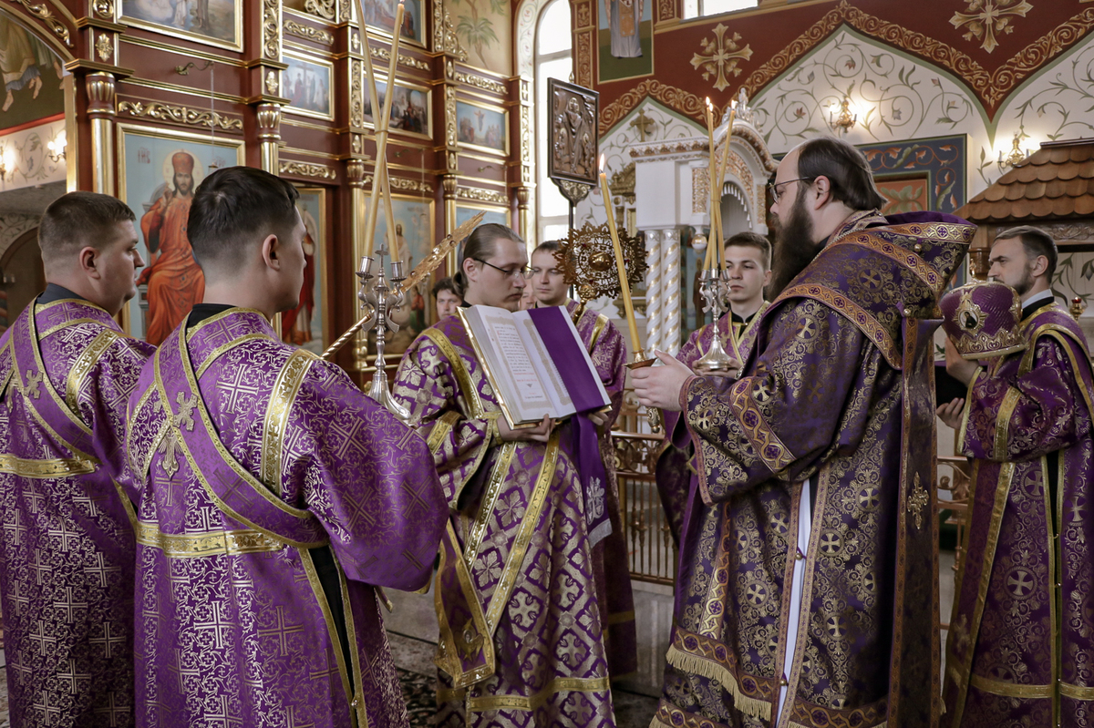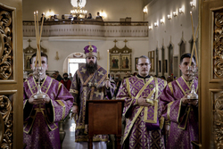 Его Преосвященству сослужили: архимандрит Петр (Путиев), иерей Георгий Дворовой, иерей Андрей Андреев.