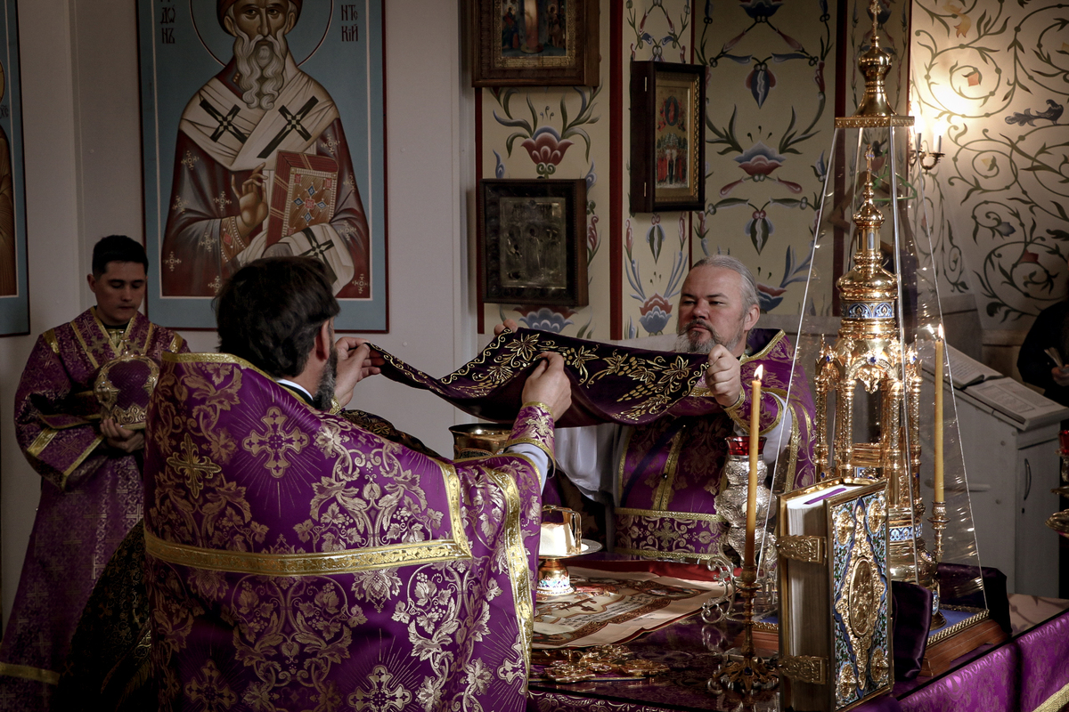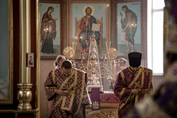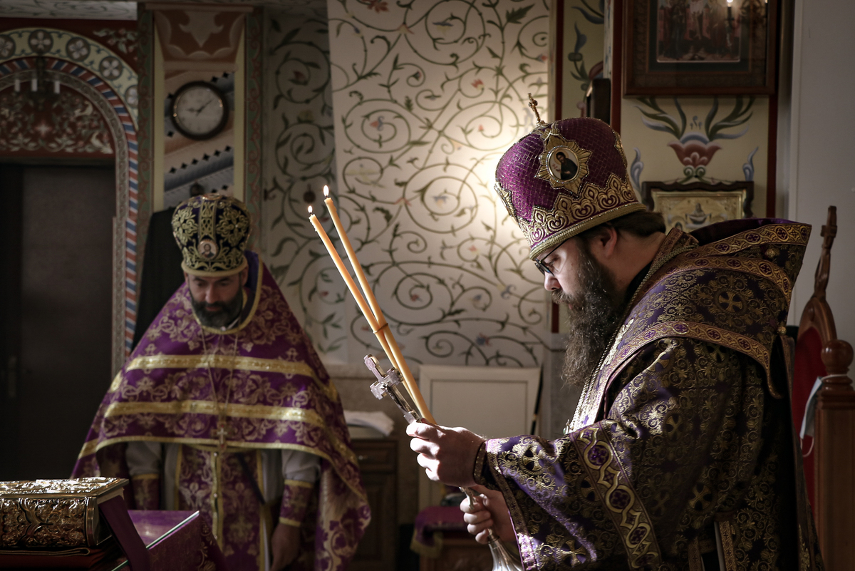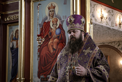 Его Преосвященству сослужили: архимандрит Петр (Путиев), иерей Георгий Дворовой.