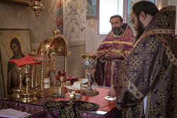 По завершении литургии владыка обратился к прихожанам с архипастырским словом, разъясняя слова Евангельского чтения о сыновьях Заведеевых Иоанне и Иакове, которые просили Господа дать им сесть одному по правую сторону, а другому по левую сторону в славе Господней». На что Господь им ответил: «не знаете, чего просите. Можете ли пить чашу, которую Я пью, и креститься крещением, которым Я крещусь? Они отвечали: можем. Иисус же сказал им: чашу, которую Я пью, будете пить, и крещением, которым Я крещусь, будете креститься; а дать сесть у Меня по правую сторону и по левую – не от Меня зависит, но кому уготовано».