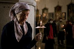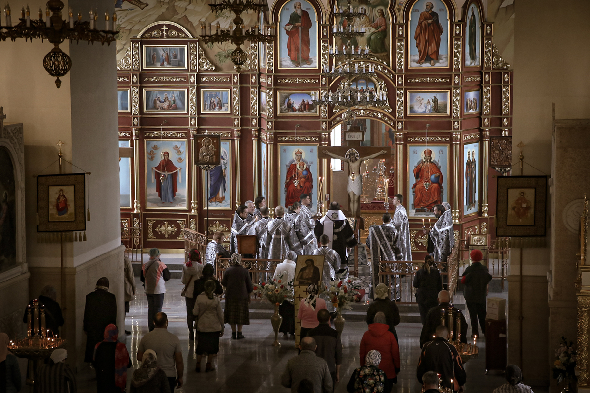 В конце службы все верующие с благоговением подходят поклониться перед Распятием, Крестом Христовым, который на пассии выносится на середину храма.