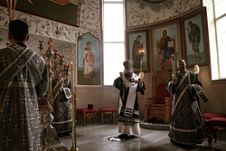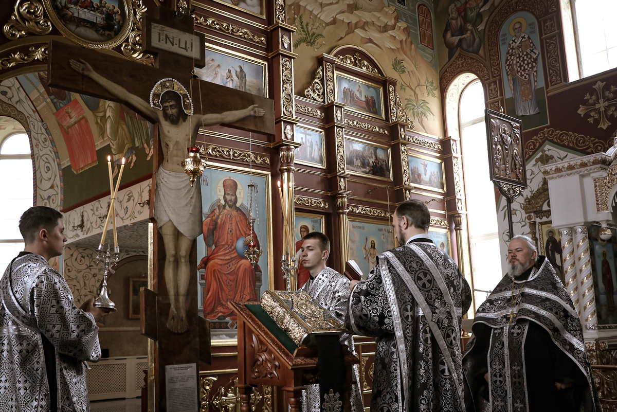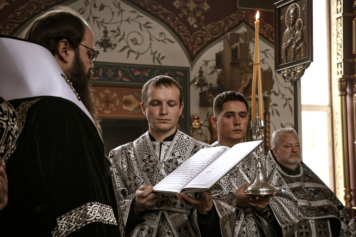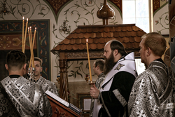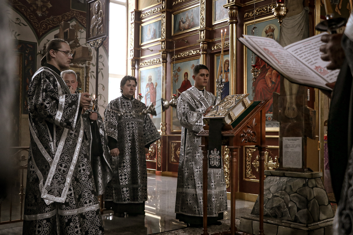 Его Преосвященству сослужили: архимандрит Петр (Путиев), благочинный Центрального округа протоиерей Андрей Борисенко, иерей Георгий Дворовой, иерей Андрей Андреев.
