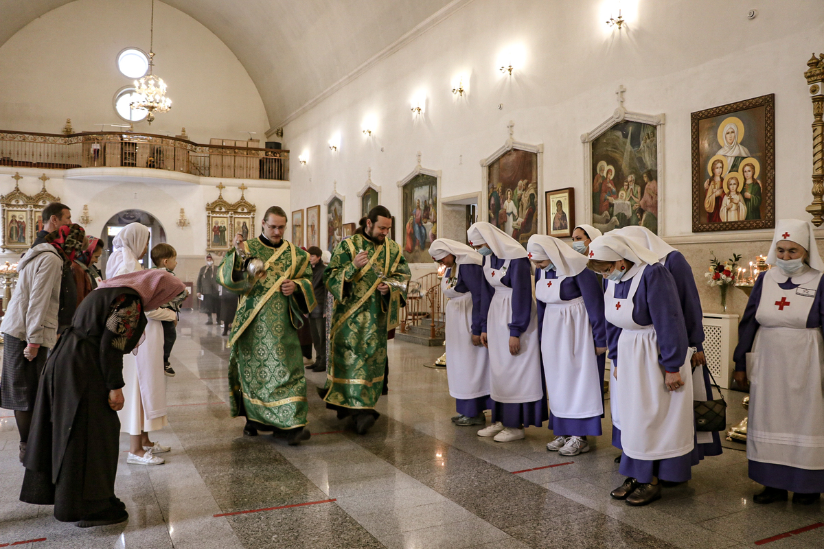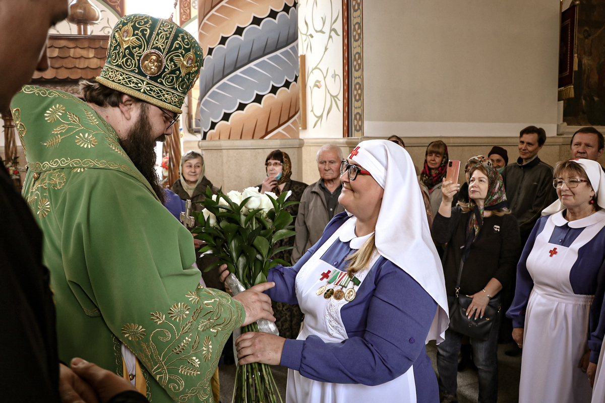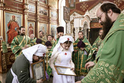 На малом входе владыка Даниил совершил посвящение в сестры милосердия Татьяну Чернышеву и Комилу Штыркину.