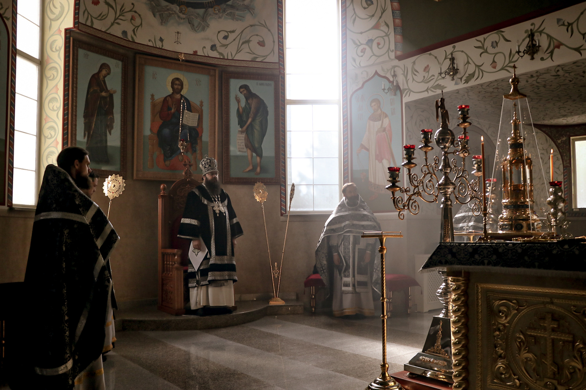 Его Преосвященству сослужили: архимандрит Петр (Путиев), благочинный Бишкекского округа протоиерей Андрей Борисенко, иерей Георгий Дворовой, иерей Илья Меляков.