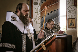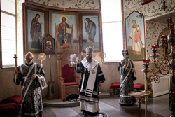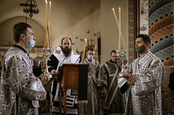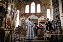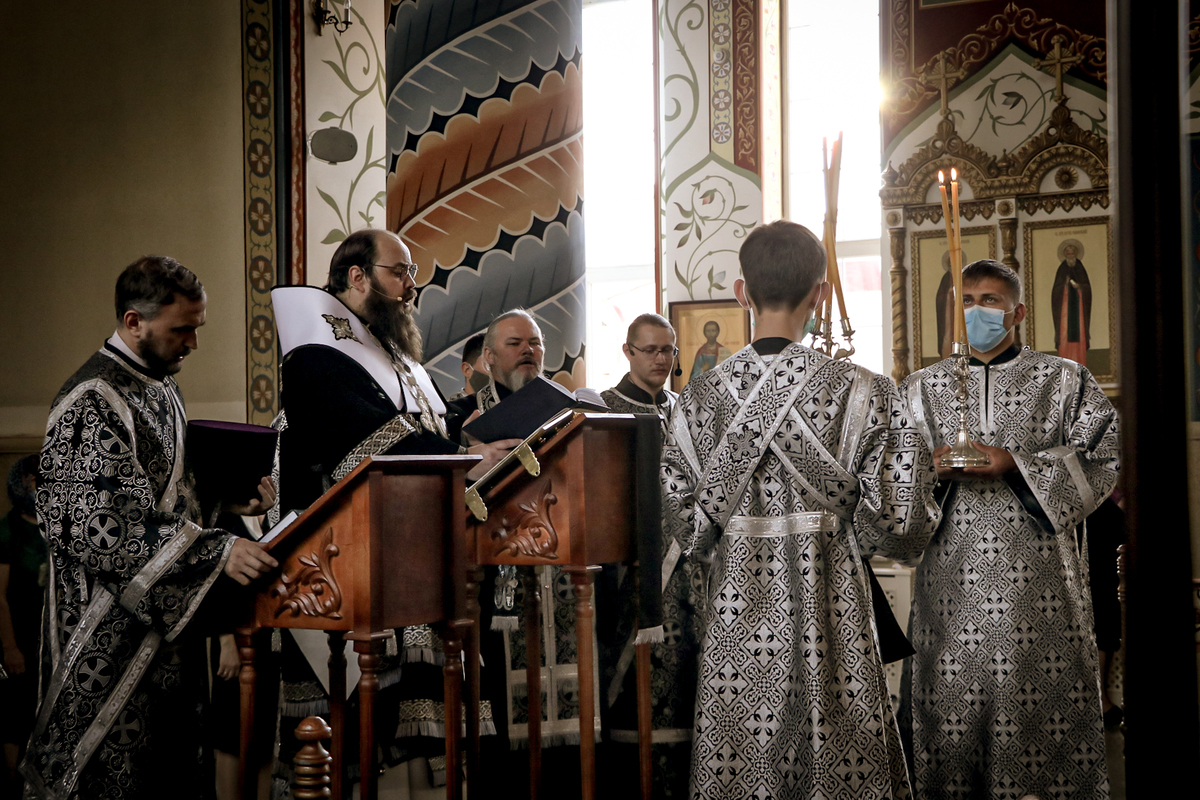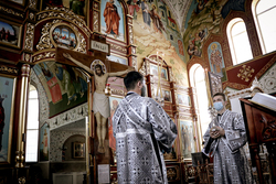 Его Преосвященству сослужило духовенство собора.