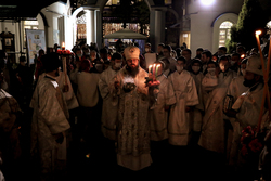 По традиции, под пение стихиры «Воскресение Твое, Христе Спасе» вокруг Свято-Воскресенского собора был совершен крестный ход, и началась Пасхальная Утреня, в конце которой было прочитано «Слово огласительное святителя Иоанна Златоуста на Святую Пасху».
