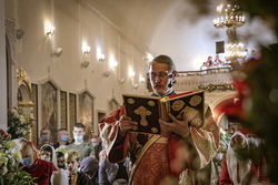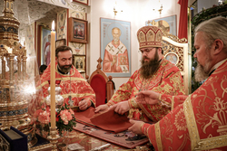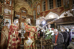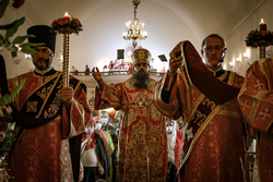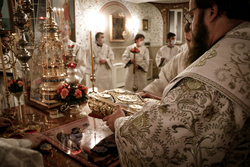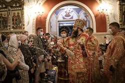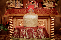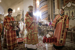 После заамвонной молитвы Его Преосвященство освятил артос.