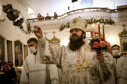 По окончании Божественной литургии Его Преосвященство поздравил прихожан. В своем слове, владыка Даниил обратился к присутствующим с приветственными, радостными и вечными словами о Воскресшем Христе. Его Преосвященство передал благословение Святейшего Патриарха Московского и всея Руси Кирилла, а также слова его молитвенного сопереживания об обстановке в Кыргызстане: скорейшего разрешения возникшего конфликта, установления мира в приграничной области, прекращения кровопролития и скорби о погибших.