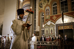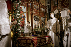 В этом году празднование Пасхи проходило в особых условиях, при ограниченном количестве прихожан в самом храме. Большая часть людей находилась на территории собора, где был установлен большой экран, на который транслировалось богослужение. Эти меры необходимы для предотвращения распространения коронавируса.
