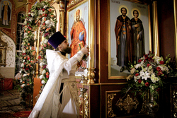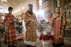 Пасхальное послание Святейшего Кирилла Патриарха Московского и Всея Руси архипастырям, пастырям, монашествующим и всем верным чадам Русской Православной Церкви огласил иерей Георгий Дворовой.