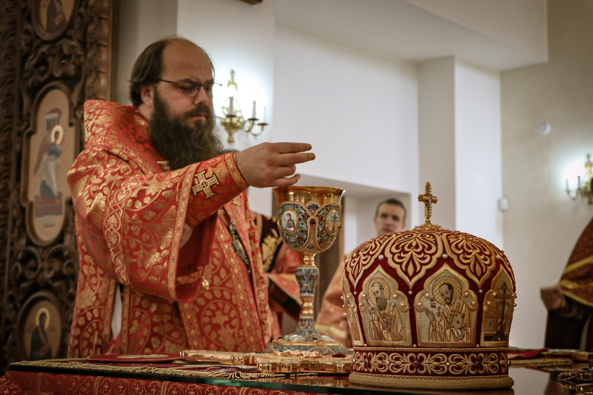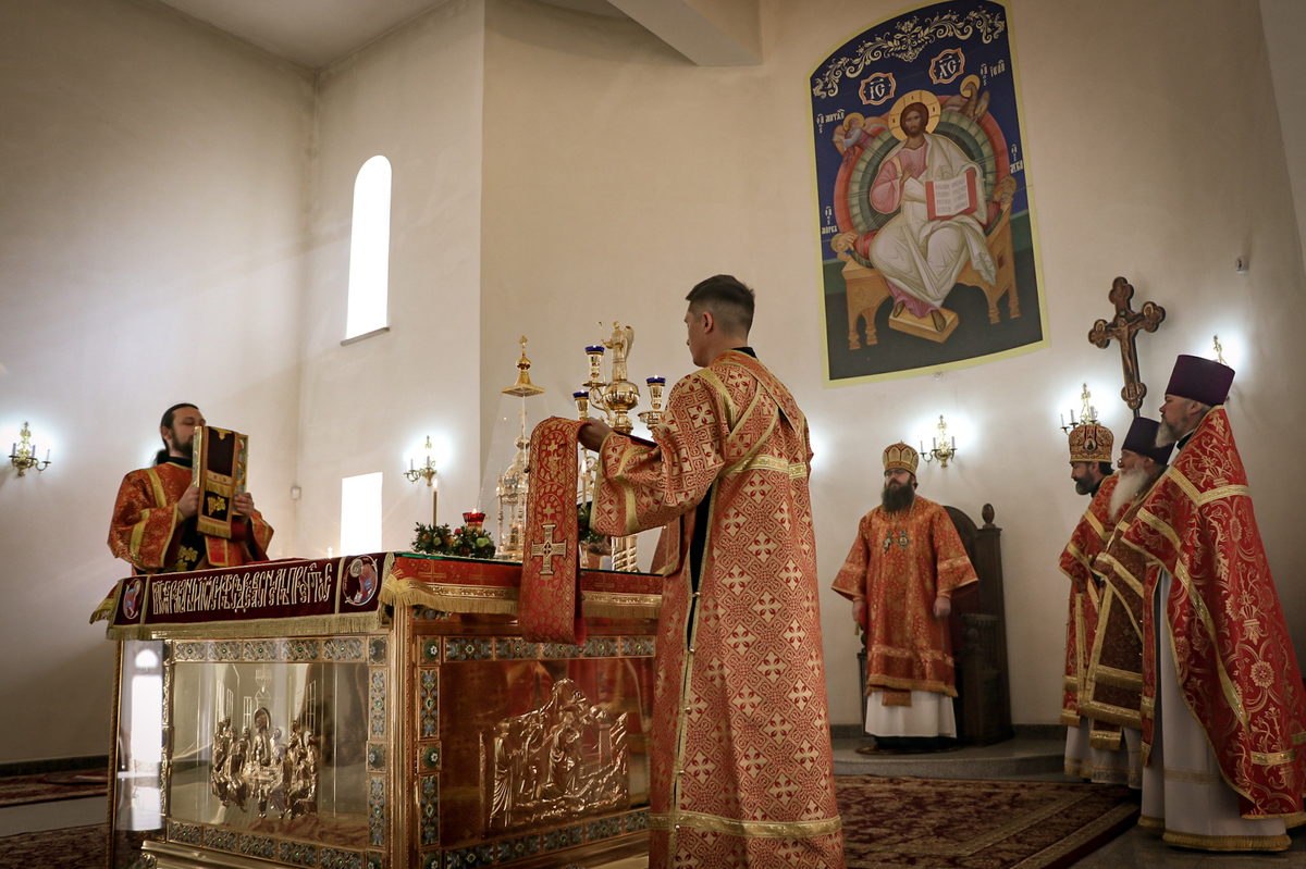 Его Преосвященству сослужили: архимандрит Петр (Путиев), протоиерей Андрей Кунавин, протоиерей Николай Сущенко, протоиерей Алексей Сыромятников, иерей Георгий Дворовой, иерей Олег Белотуркин.