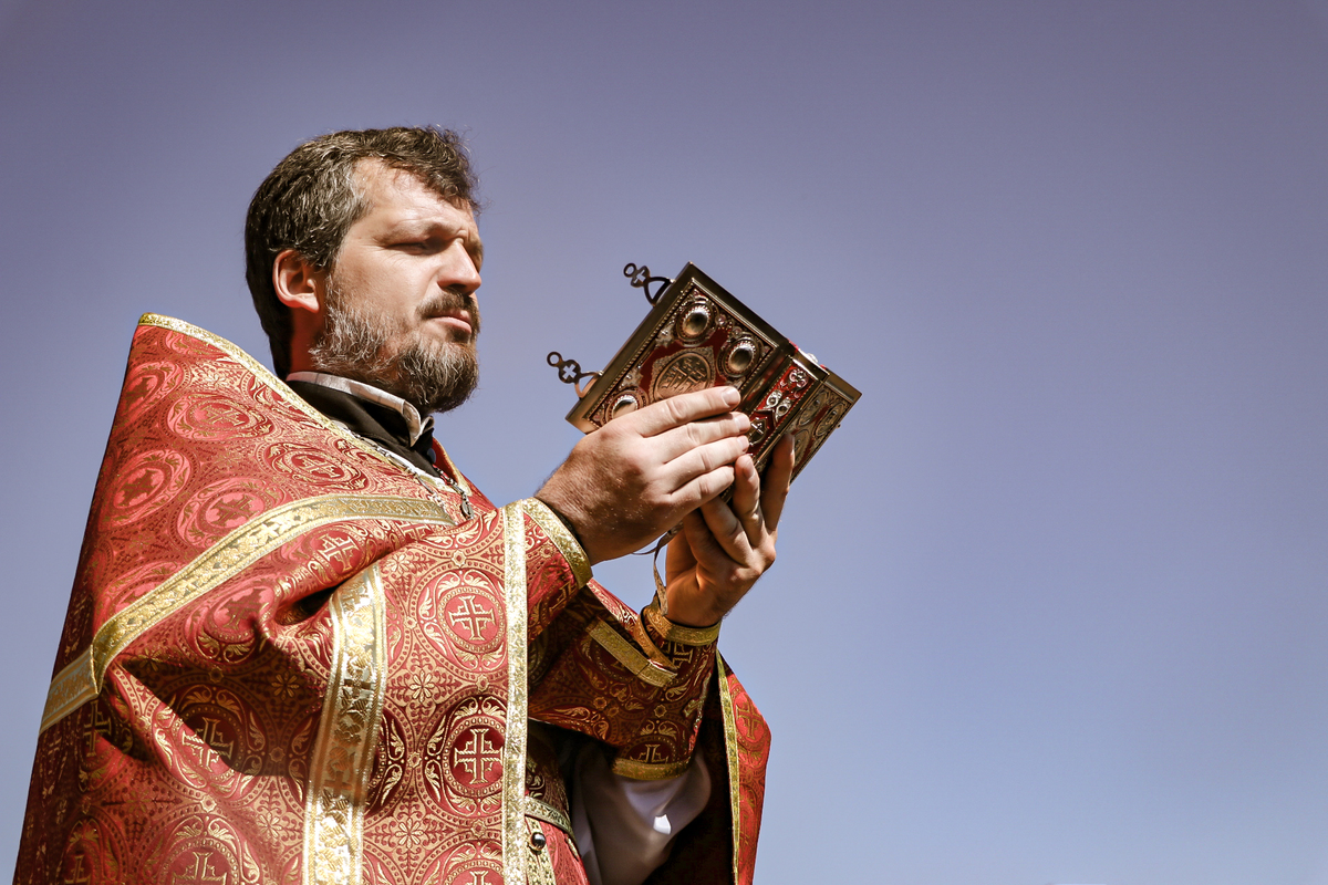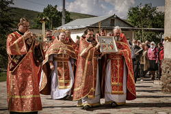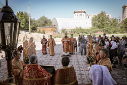 После крестного хода епископ Даниил прочитал молитву на раздробление артоса.